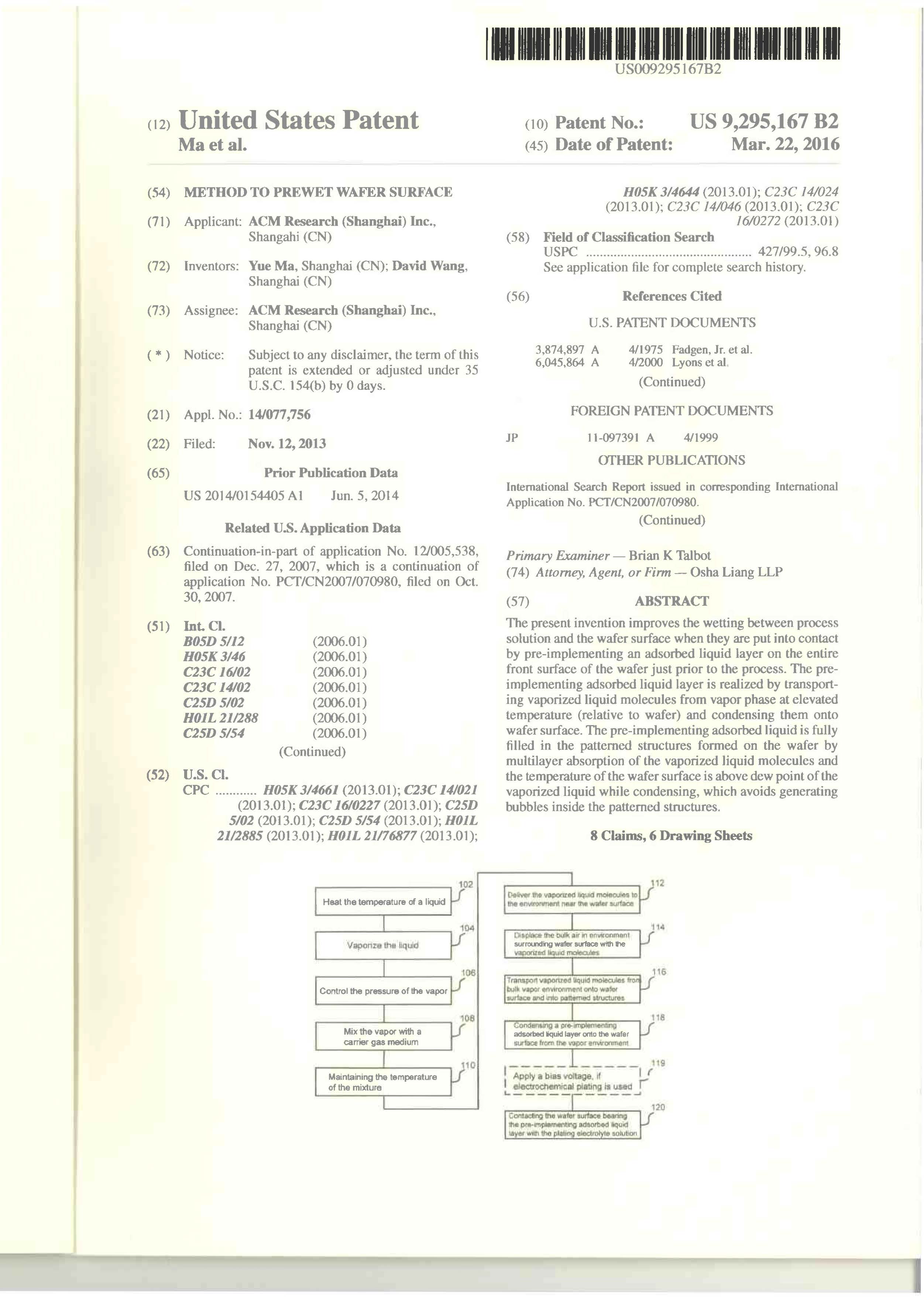 METHOD TO PREWET WAFER SURFACE
